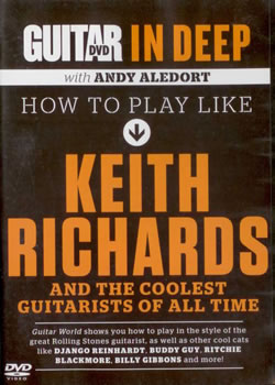 Andy switches over to a Fender Telecaster and starts to show us the magic of open tunings. Often Keith would unstring his low E string and only strum the remaining 5 strings. Open G also sounds different. Playing it well is going to take some getting used to and a love of his songs, so distinctive is Keith's style. This is great! Just about any fledgling guitarist could learn from this lesson and not be overwhelmed. Tumbling Dice is next. And parts of other Stones songs pop up too. This presentation is tied to lessons in one of the Guitar World monthly Publications. We later put a capo on the 4th fret and we get a really nice sound too! Then for about four minutes we tune to open D: D A D F♯ A D and learn more of Keith's chord moves.