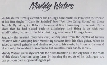 Blues fans - Chicago Blues fans - Muddy Waters fans - Mckinley Morganfield fans - this is a must have guitar instructional.